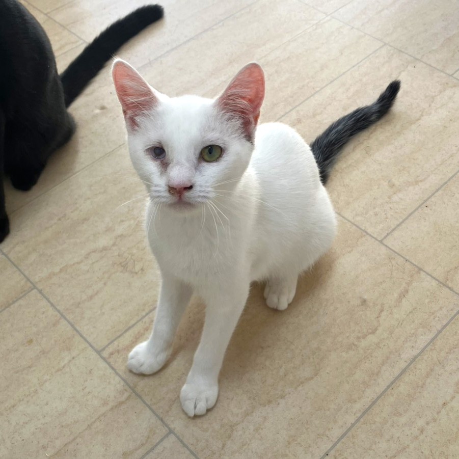 - 真っ白な体にしっぽだけが黒い柄